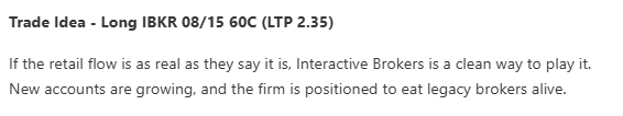 Meanwhile, the IBKR 08/15 60C I flagged worked like a charm, I cut half at 5.88 (from 2.35). Still holding the rest.