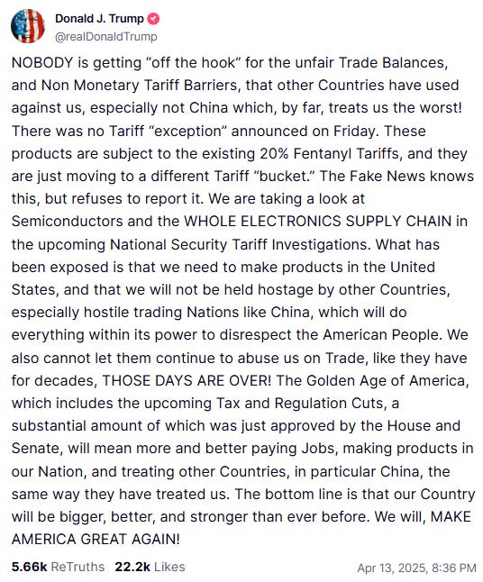 Market participants were handed what looked like a dovish inflection point- the White House walking back its tariff policy through: